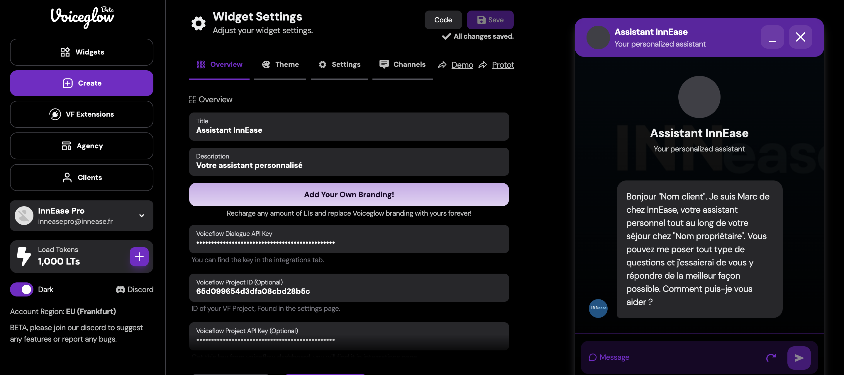 Création d’un premier assistant avec la mise en place d’un Dashboard contenant les statistiques, les informations liées à l’assistant, les questions récurrentes et des notifications en cas d’incapacité de réponse. Si il convient nous le déployons sur chaque bien